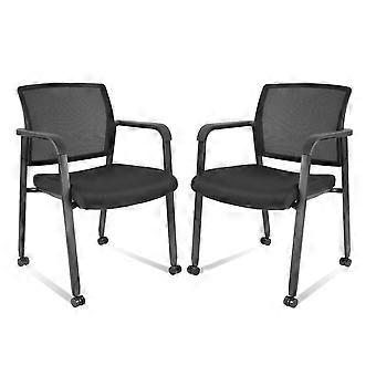 Mesh Office Chair, Stackable Ergonomic Guest Chair with NonSlip Silent Wheels, Padded Seat, Black