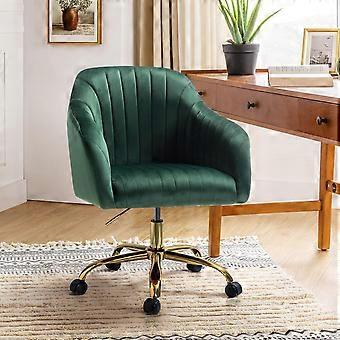 Ergonomic Office Chair 360 Degree Swivel Tufted Green Velvet, Adjustable Backrest, GoldTone Base