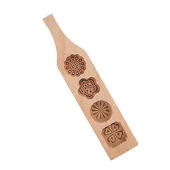 Moon Cake Mold Wooden 4 Flower Handcarved Pattern Press for Cookies Pumpkin Pie Pastry Baking