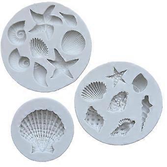3PCS Silicone Fondant Molds Ocean Theme Seashell Starfish Coral Nonstick for Cake Chocolate