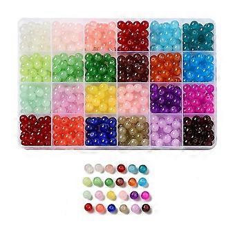 600pcs 24 colors Baking Painted Imitation Jade Glass Round Beads Mixed color 8.5~9mm Hole: 1.5mm 25pcs/color