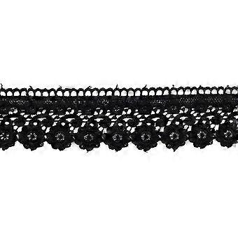 Black Vintage Cotton Lace Ribbon 3m x 5.5cm, Wide Crochet Trim for Sewing and DIY Crafts