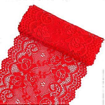 Red Lace Fabric with Vintage Lace Trim, Wide Floral Stretch Ribbon for Sewing, Crafts and Weddings
