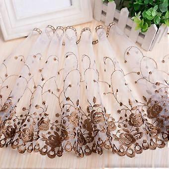 25cm Wide Coffee Embroidery Lace Fabric for DIY Wedding Dress, Sewing and Elegant Decoration