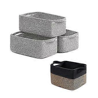 3 Piece Cotton Rope Woven Storage Basket Set, Round and Rectangular Fabric Bins for Home Organization Ref:5212