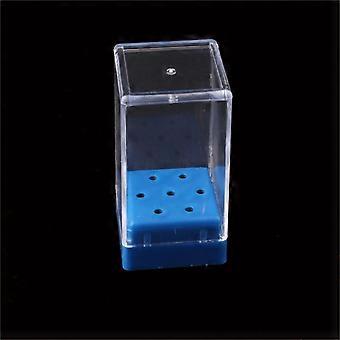 Nail Drill Bit Holder with Clear Cover, 7 Hole Blue Acrylic Organizer for Salon and Home
