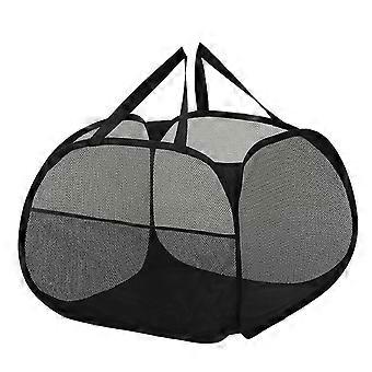 Foldable Mesh Laundry Basket Hamper, Tear Proof, Lightweight, 68x31x45cm, for Dorms and Apartments, Black
