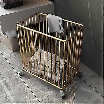 Laundry Hamper with Wheels, 360° Easy Mobility Metal Laundry Cart, Gold Basket for Bathroom and Bedroom