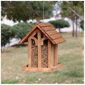 Treehouse Shaped Hanging Bird Feeder with Large Capacity Metal Tray for Outdoor Garden