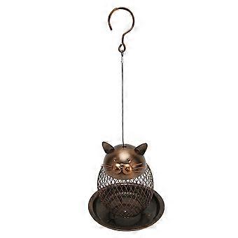 Squirrel Proof Cat Shaped Metal Bird Feeder with Easy Refill Hanging Design for Garden