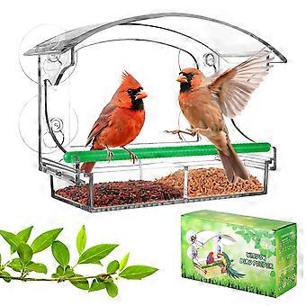 Window Bird Feeder Clear Acrylic with 4 Strong Suction Cups, Detachable Seed Tray, Weatherproof
