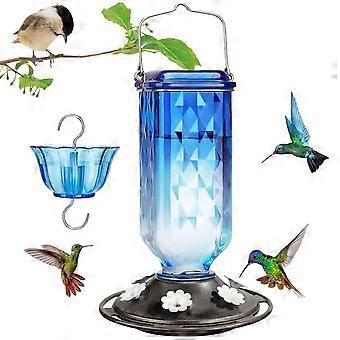 Glass Hummingbird Feeder with Ant Moat, BeeProof Ports, LeakProof Gradient Blue for Garden