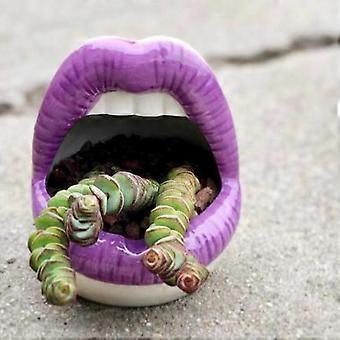 Handmade Ceramic Lips Planter with Playful Lip Design for Succulents or Decorative Storage Purple