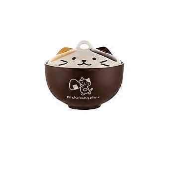 550ml Cartoon Cat Ceramic Soup Bowl with Lid, Microwave Safe Ramen Bowl for Home or Office