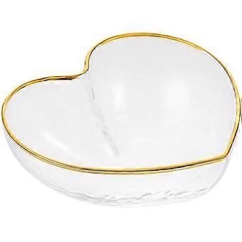 Glass Salad Bowl Heart Shaped with Gold Rim Elegant Transparent Design for Desserts Fruit and Salad