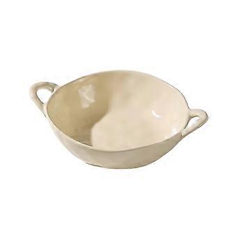 Ceramic DoubleEared Soup Bowl, Cream Porcelain, Microwave and Oven Safe for Noodles and Salad