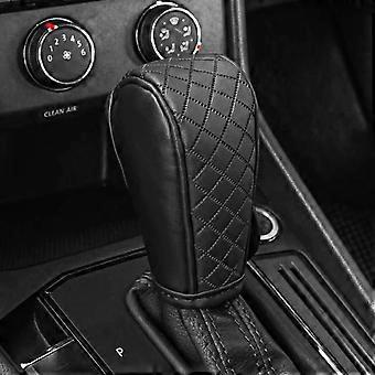 Leather Gear Shift Knob Cover with Diamond Pattern, Breathable AntiSlip Car Shifter Protector Black
