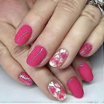 Short Square Press on Nails with Valentine Heart Design Pink White Acrylic Full Cover False Nails for Women