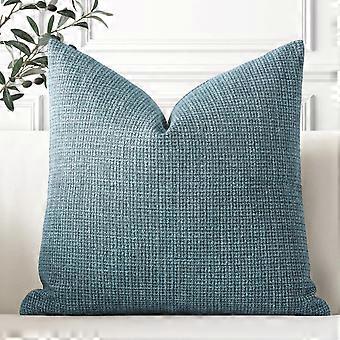 Blue Linen Cushion Cover 55x55cm Decorative Square Throw Pillow Cover for Sofa and Bedroom
