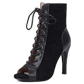 Laceup Women's Heel Open Toe Dance Shoes Hollow Pointed Toe Short Boots (35 EU) Black