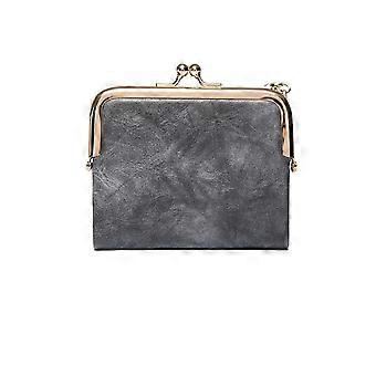 Ladies' wallet, small, compact, doublefolded, leather, vintage coin purse with zipper and kiss lock, gray, 1 pc 1 pc Gray