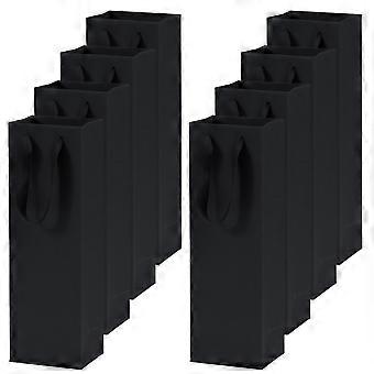 8Pcs Black Wine Gift Bags with Handles for Single Bottle Weddings and Parties, Reusable Paper
