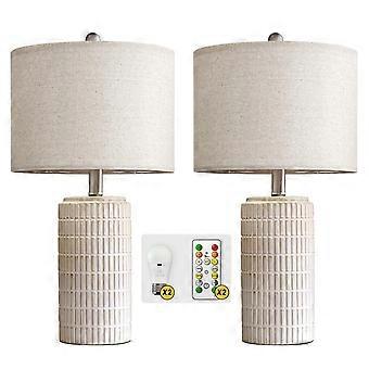 23 Inch Modern Ceramic Table Lamps Set of 2 with White Linen Shade for Bedroom and Living Room