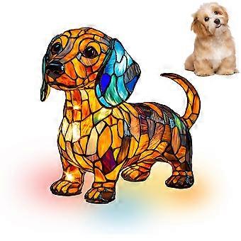 Dog Lamp Vintage Stained Glass Dachshund LED Table Light Cute Resin Design 5.9 Inches