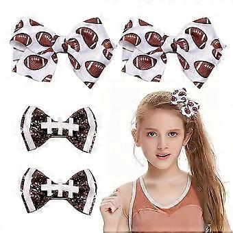 Hair Clips Set of 4 Football Bow Accessories for Women Girls Game Day Sports Party