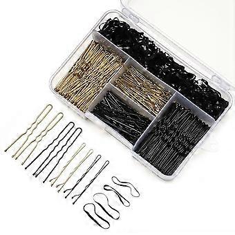 300 Pcs U Shape Bobby Pins Set with Secure Grip Design, Black Gold Bronze Hair Pins for Women Girls
