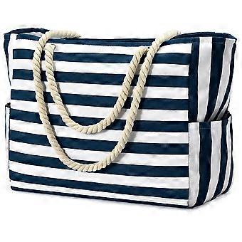 Large Canvas Beach Bag for Swimming Pool - Extra Large Durable Tote with Waterproof Lining and Multiple Pockets