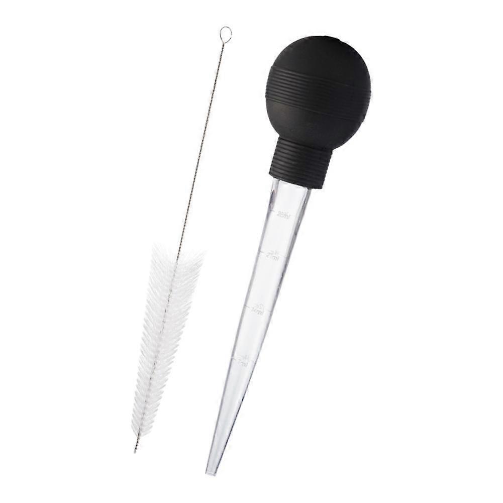 <p>Material: PS+TPR<br/>Size: 29.5*7cm/ 11.6*2.7inches<br/>Color: black<br/><br/>1. The large capacity allows for more juice to be extracted at once, resulting in higher processing efficiency.<br/>2. Equipped with a cleaning brush, the juicer is easy to use, thoroughly cleaned, and ensures hygiene during use.<br/>3. Made of food-grade materials, it does not contain any harmful substances, making it safe and reliable.<br/>4. Suitable for different types of meat and can be used to create various delicious foods.<br/>5. The operation is simple, making it particularly suitable for making turkey and enhancing the cooking experience.<br/><br/>Package includes: 1*dropper, 1*brush.</p>