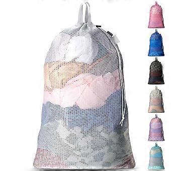 Large Mesh Laundry Bag with Carry Handles, Drawstring Closure, Machine Washable, Durable Soft Net, Ideal for College Dorms and Laundromats, White