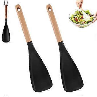 Pack of 2 Large Silicone Cooking Spoons with Wooden Handle, Heat Resistant Non Stick Utensils Khaki