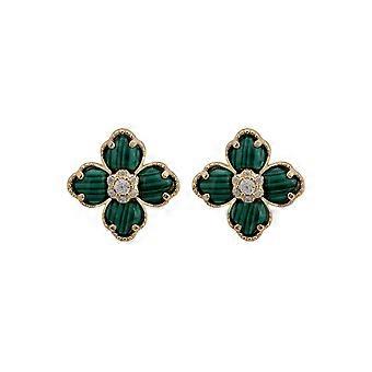 Latelita Flower Clover Stud Earrings in Gold - 925 Sterling Silver with Malachite and Zircons - Four-Leaf Clover Shape - Size: Unknown
