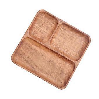 Wooden Divided Plate Rustic Natural Acacia Wood Dinner Plate for Portion Control and Healthy Eating