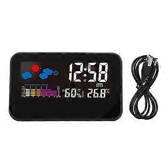 LCD Screen Temperature Humidity Alarm Clock with Weather Forecast, Sound Control, and Backlight Display for Home Use