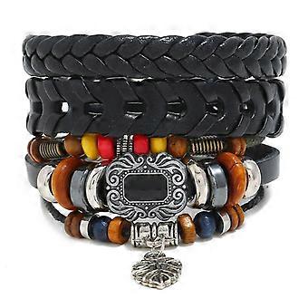 Leaf pendants string beaded cowhide bracelet - Leaf pendants vintage braided bracelets - Leaf pendants multi-layer bracelet