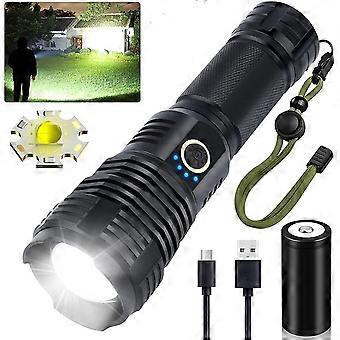 Led Flashlights Rechargeable High Lumens, 90000 Lumens Super Bright Tactical Flashlights, X70.2 Zoomable Waterproof Flash Light 5 Modes For Camping,,0