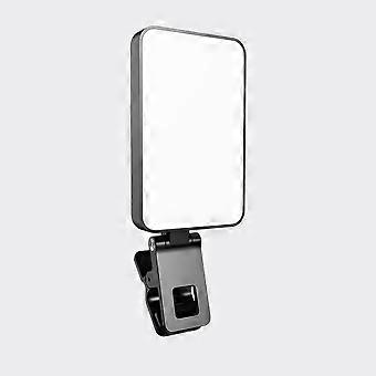LED Video Mini Selfie Light, Rechargeable Clip-on Light for Laptops, Tablets and Computers, Dimmable Fill Light for Meeting/Photography/Makeup [Black]