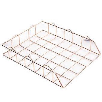 Letter Trays Systems Pack of 2 Stackable Metal Paper Tray, Desk Organiser (Rose Gold)