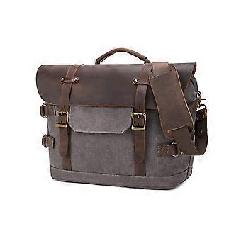 Men's Laptop Bag Waterproof Waxed Canvas Messenger for Work Travel with Padded Pocket Light Gray