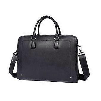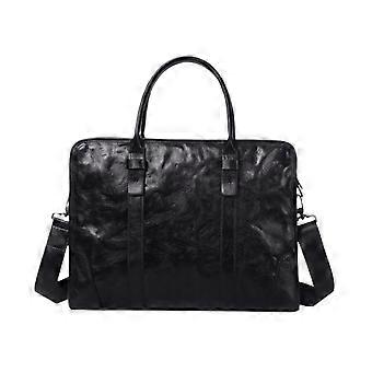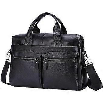Men's Leather Laptop Messenger Bag with Adjustable Shoulder Strap, Black Work Briefcase