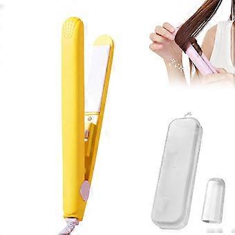 Mini Hair Curler Ceramic Curling Iron 2 in 1 Quick Heating 45s Travel Size with Heat Shield Yellow