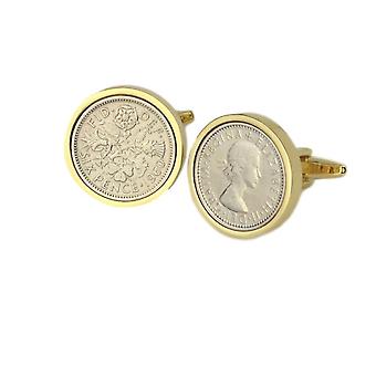 Lucky Sixpence Cufflinks in Gold Mount | 1960