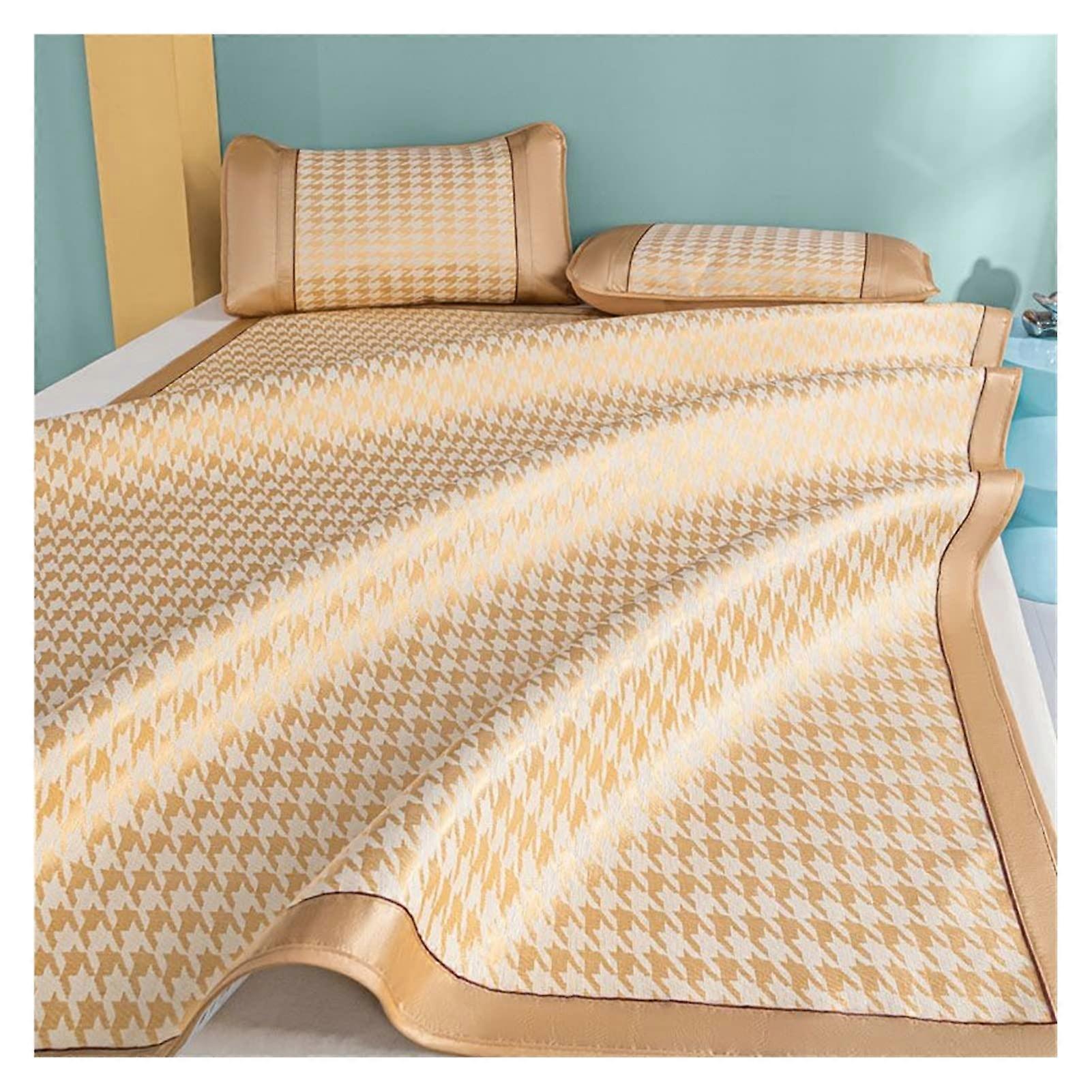 Luxurious summer sleeping mat, icesilk mat, double bed cover, foldable nonbamboo mat (Dark Khaki)