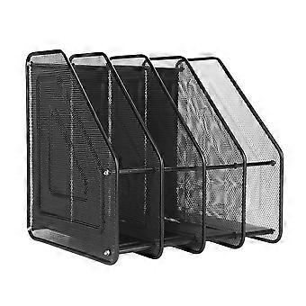 Magazine File Desk Organizer 4 Compartments Wire Mesh Black 295x316x325mm