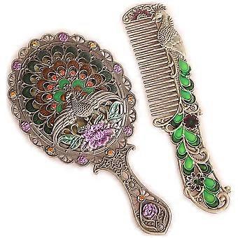 Vintage Peacock Handheld Mirror and Comb Set, Retro Princess Style, 2 in 1 Decorative Design