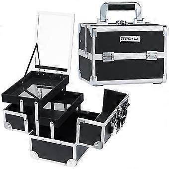 Makeup Train Case with Mirror and Lockable Design, Dual 2 Tray Cosmetic Organizer, Portable Storage Box in Black