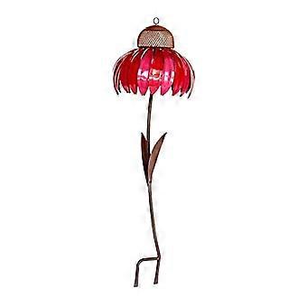 Metal Bird Feeder with Red and Blue Coneflower Design for Garden Beds, Detachable Stakes